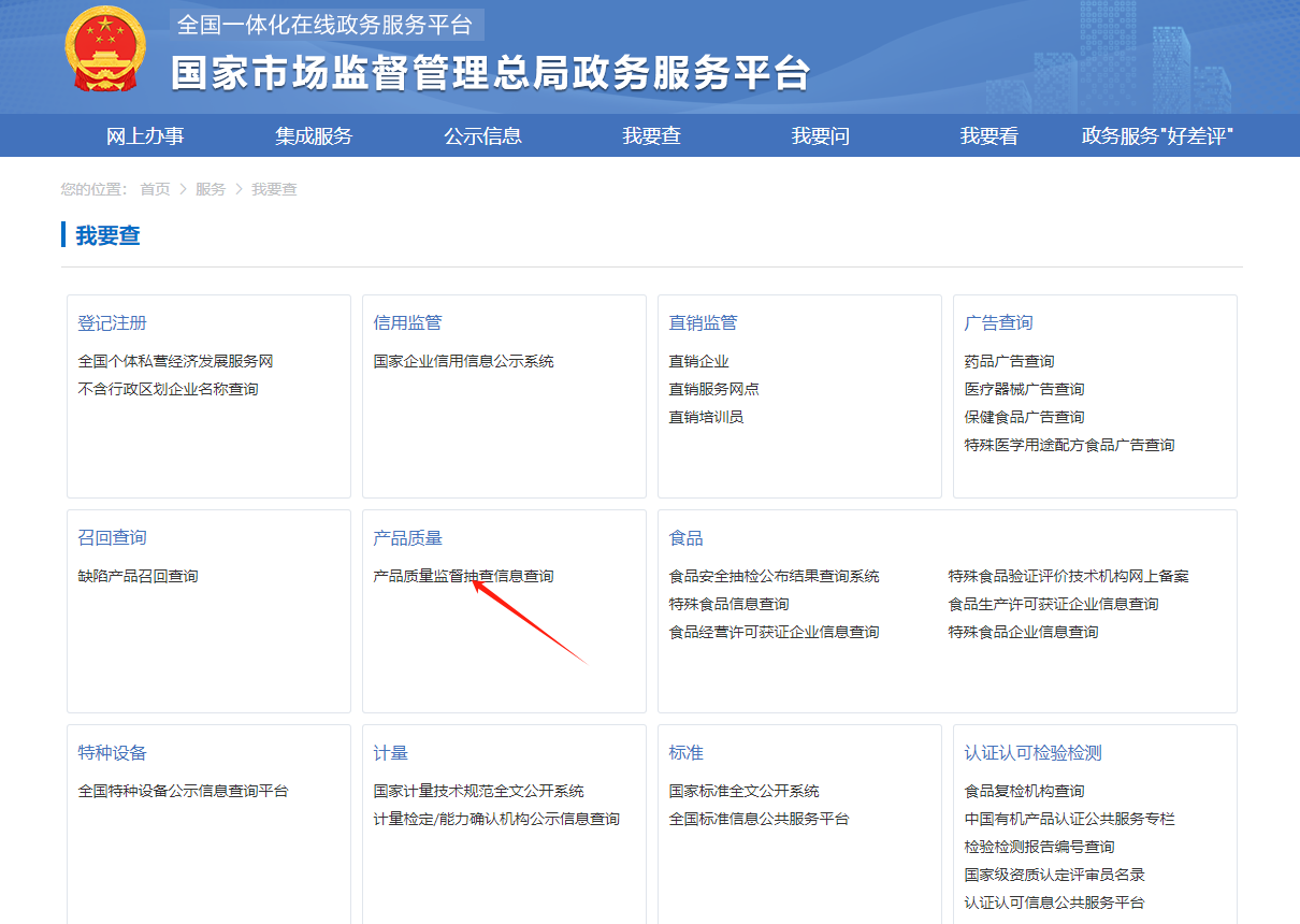 国家市场监督管理总局发布了关于2024年产品质量国家监督抽查情况通报。 2024年,市场监管总局对147种产品组织开展产品质量国家监督抽查。全年共组织抽查检验23764家企业生产经营的25250批次产品,发现3437家企业的3601批次产品不合格,监督抽查不合格率为14.3%。 2024年产品质量国家监督抽查结果已通过市场监管总局网站分批向社会公布,公众可通过市场监管总局网站“服务-我要查-产品质量”栏目查询不合格产品及相关经营者等信息。 小编为大家整理了查询步骤: