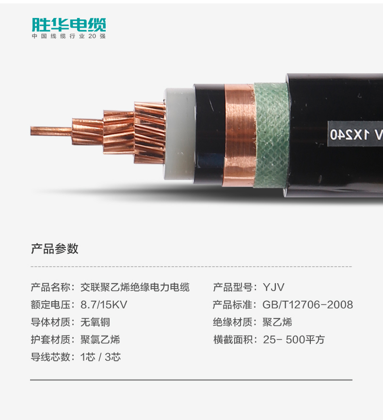 胜华电缆YJV-8.715KV中压交联聚氯乙烯绝缘铜芯电缆